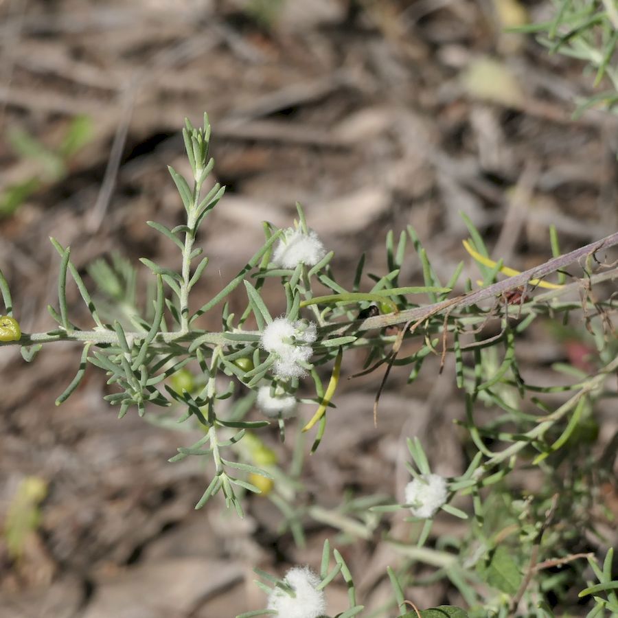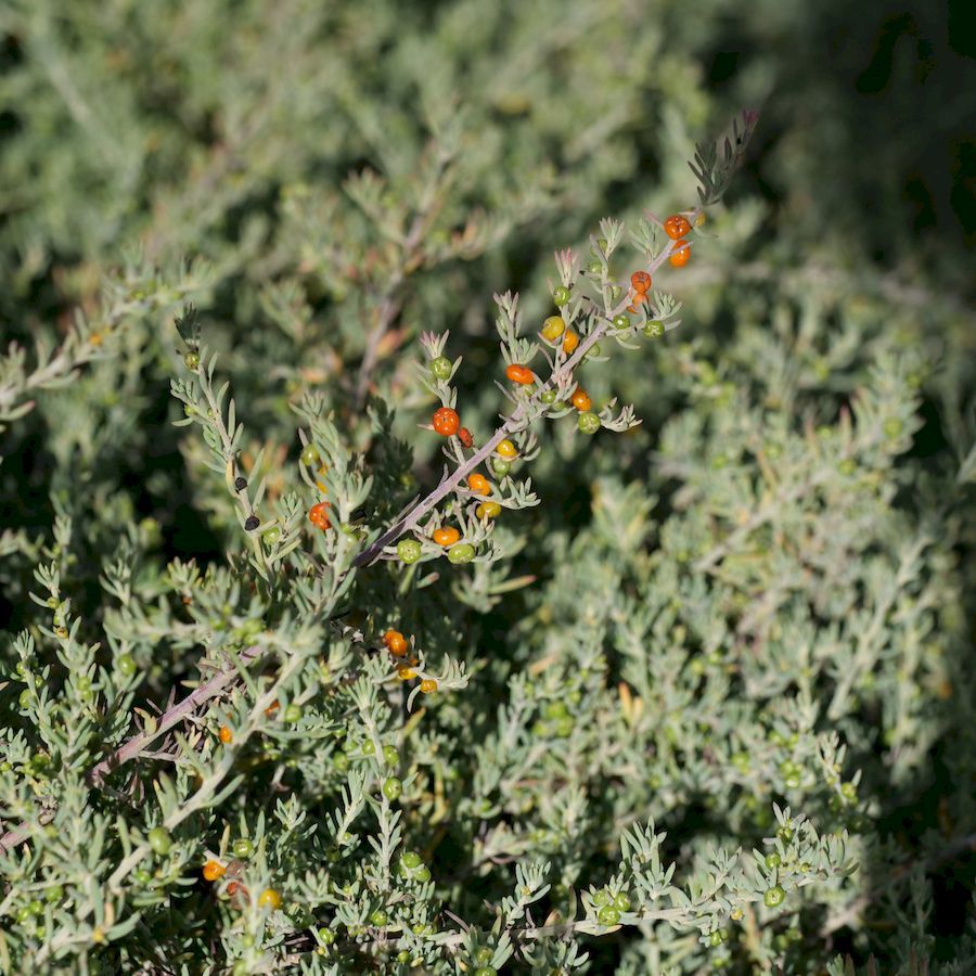 Family: Amaranthaceae Scientific name: Enchylaena tomentosa Description: Plant Form: Low-growing shrub. Size: Up to 1 m tall, usually shorter. Stem: Often prostrate, becoming semi-woody with age. Leaves: Cylindrical, often tapering at both ends, fleshy, covered in white hairs. Flowers: Small, inconspicuous, white. Fruit and Seeds: Berry-like fleshy greenish-yellow ripening to bright red. Habitat: This hardy native species inhabits arid and semi-arid areas on a variety of ecosystems and soils but particularly dry, flat areas with salty soils. Impacts: Note - this is a native species. Weed Status: Non-weedy native lookalike Weed Type: Lifeform: Herbaceous